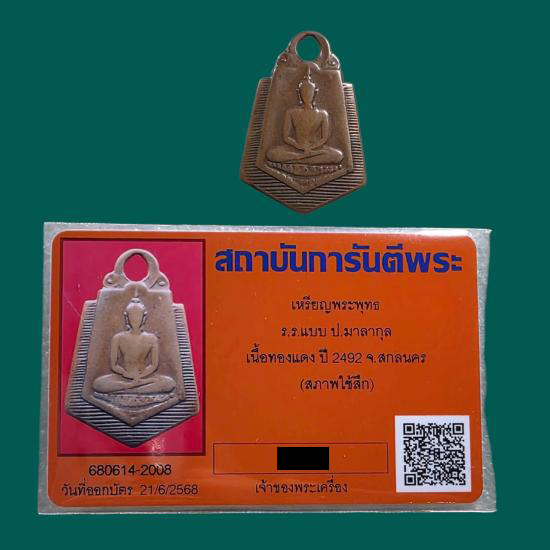 เหรียญพระพุทธ ป.มาลากุล พ.ศ.2492 จ.สกลนคร อธิษฐานจิตโดยพระอาจารย์ฝั้นพระอาจารย์มั่น หายาก พร้อมบัตรรับรอง