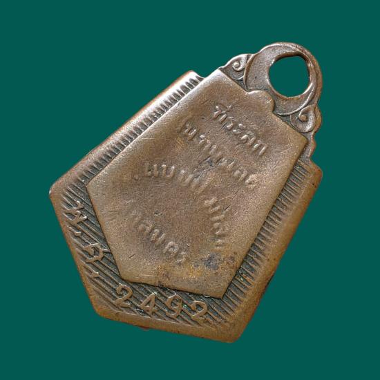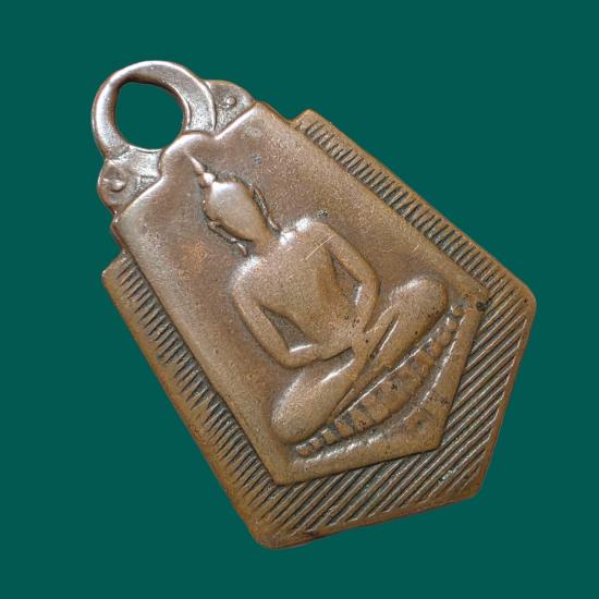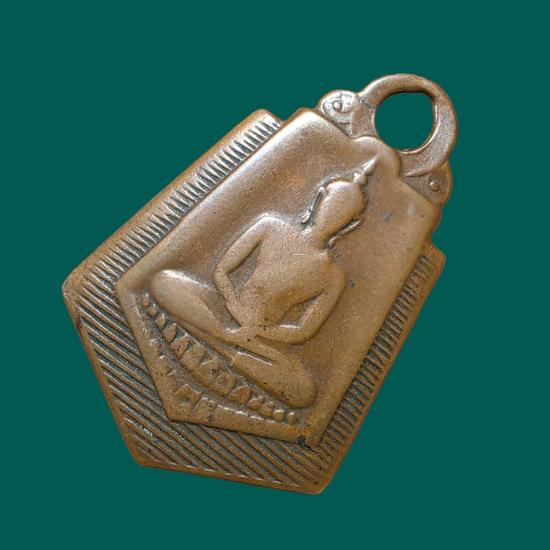 ลักษณะเป็นเหรียญปั้มคล้ายห้าเหลี่ยม หูในตัว ด้านหน้าเป็นรูปพระพุทธ