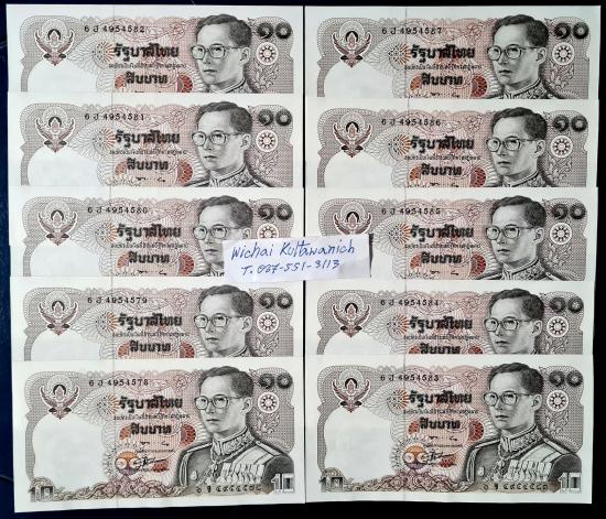 ธนบัตร ร 9 แบบ 12 ชนิดราคา 10 บาท เลขเรียง 10 ใบ ราคาเบาหวิว