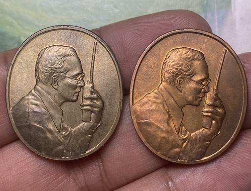 ชื่อพระเครื่อง ในหลวง ร.9 ทรงวิทยุ เนื้อนวะ + ทองแดง ซองเดิม