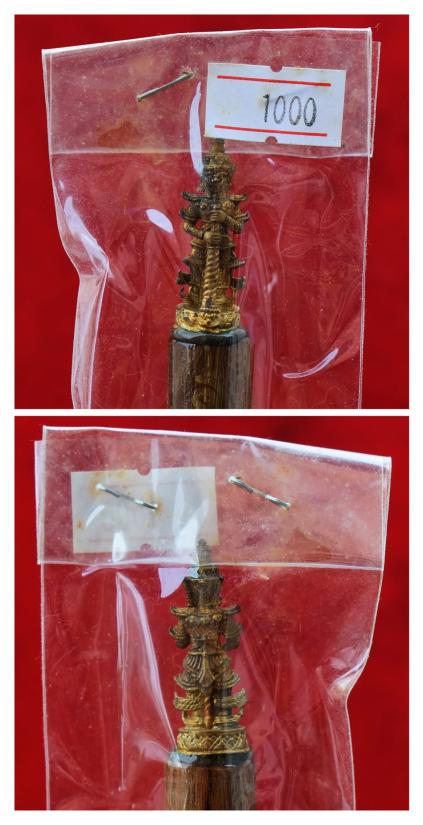 ไม้ครูสะกดวิญญาณ (ตำรับแรง) เบอร์ ๗๙ สร้างน้อยเพียง 90 ด้าม (หายากมากๆ) ปี 2558 หลวงปู่สิงห์ วัดบ้านป่าตะแบง จ.นครราชสีมา พร้อมซองเดิมจากวัด สภาพพระตามรูปที่ลงทุกประการ (ขนาดยาวประมาณ 17 ซม.)