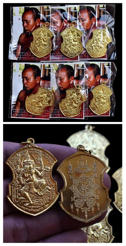 ชุด 6 องค์...เหรียญพระพิฆเณศภาคสำเร็จเต็มสูตร เนื้อทองนพคุณ ปี 2555 หลวงพ่อมาโนช วัดบุ่งคล้า จ.นครราชสีมา พร้อมซองรูปเดิมจากวัด
