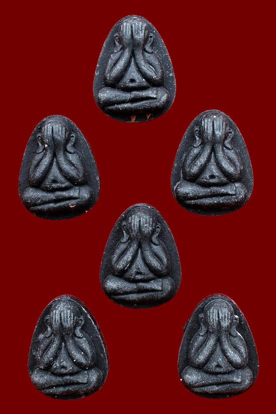 ชุด 6 องค์...พระปิดตามหาเสน่ห์ เนื้อว่านผสมผงอิทธิเจเสน่ห์จันทร์ดำ ฝังตะกรุดทองแดง 2 ดอก ปี 2554 หลวงปู่น้อย วัดบ่อหลวง จ.เพชรบุรี พร้อมซองรูปเดิมจากวัด