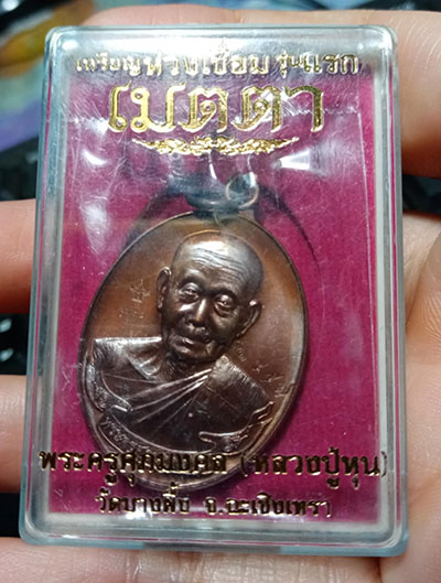 129.........วัดใจ เหรียญห่วงเชื่อม รุ่นแรก เมตตา หลวงปู่หุน วัดบางผึ้ง จ.ฉะเชิ่งเทรา เนื้อทองแดงมันปู ( โค๊ต แจกทาน ) ปี 2558