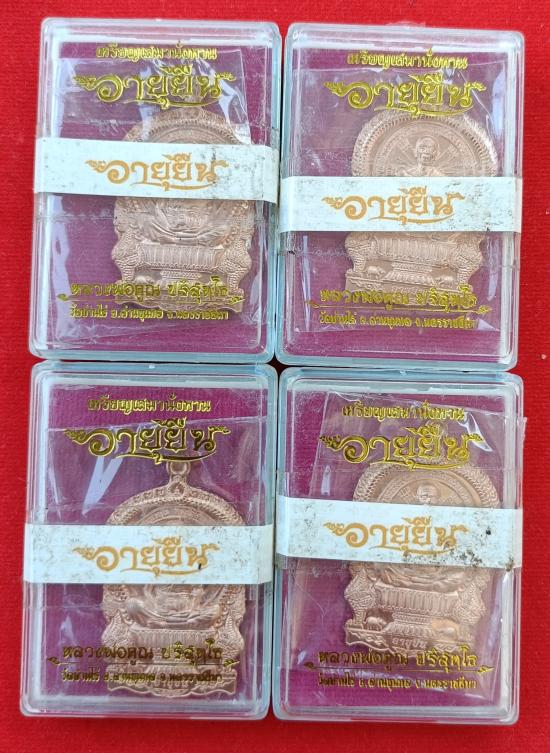 เหรียญเสมานั่งพาน อายุยืน หลวงพ่อคูณ วัดบ้านไร่ ปี2558 เนื้อทองแดง ทีเดียว 4 องค์ครับ |