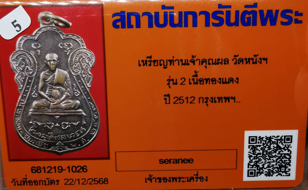 เหรียญท่านเจ้าคุณผล วัดหนังฯ รุ่น2 เนื้อทองแดง ห่วงเดิม ปี2512 จ.กรุงเทพฯ + บัตรG-pra สภาพสวยเดิมค่ะ สภาพตามรูปทุกประการค่ะ