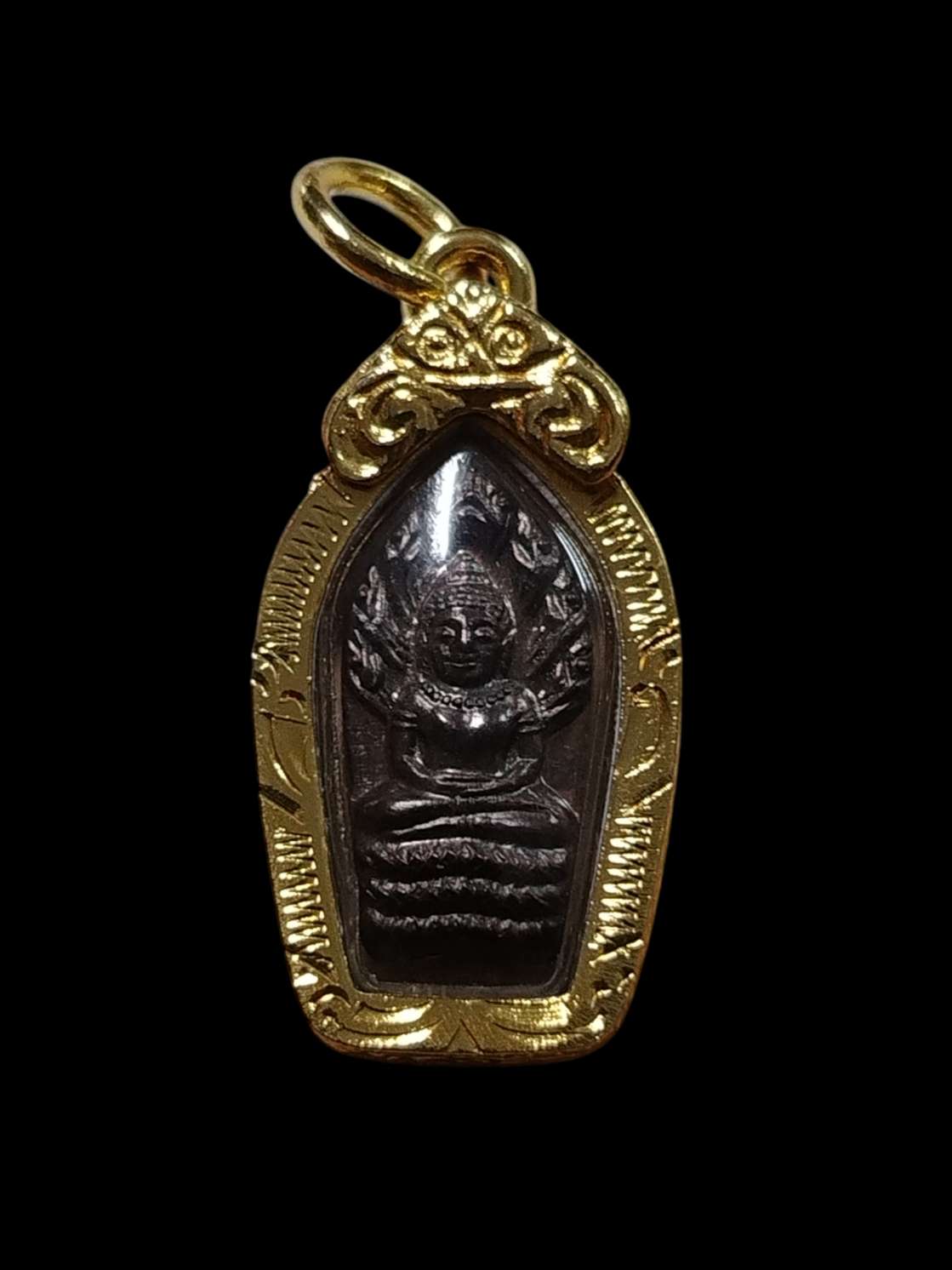 นาคปรกรุ่นเมตตาชายแดนหลวงพ่อคูณปี 37 เลี่ยมพร้อมใช้กรอบโลหะชุบทอง