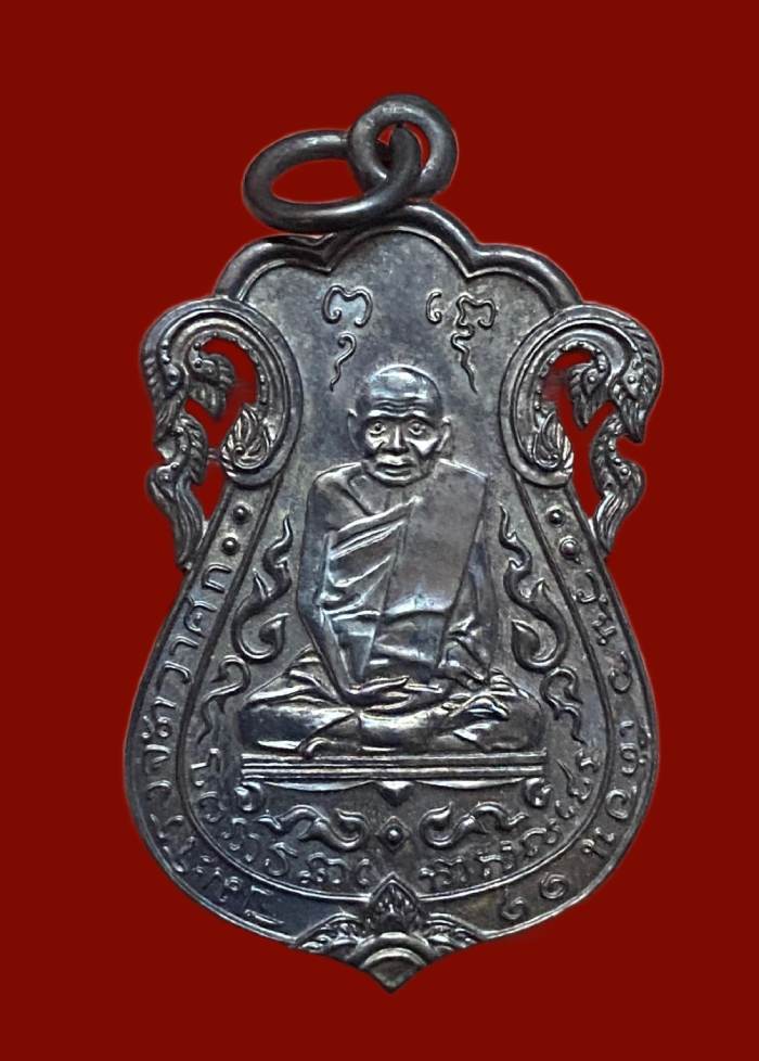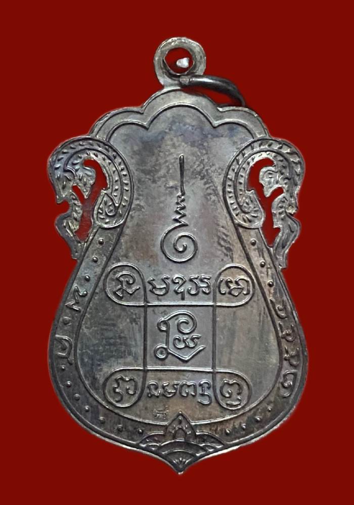 เหรียญเสมาฉลุ หลวงปู่เอี่ยม วัดหนัง หลังยันต์สี่ รุ่น รับเสด็จยกช่อฟ้ามหามงคล เนื้อเงิน ปี 2554