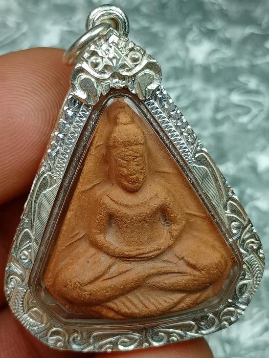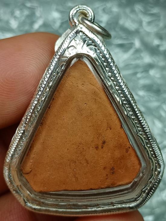 พระเนื้อดินพิมพ์ห้าเหลี่ยม หลวงพ่อลี วัดอโศการาม ปี2500 จ.สมุทรปราการ สภาพสวยสมบูรณ์ คมชัด พร้อมเลี่ยมเงินงานมืออย่างดี