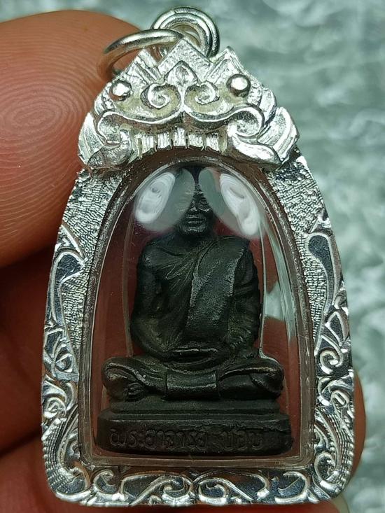 รูปหล่อรุ่นแรกหลวงปู่ชอบ ฐานสโม อุเล็ก ปี 2517 พระดี พิธีใหญ่ ปีลึก กริ่งดังกังวาล สภาพสวยสมบูรณ์ พร้อมเลี่ยมเงินงานมืออย่างดี