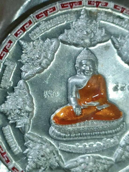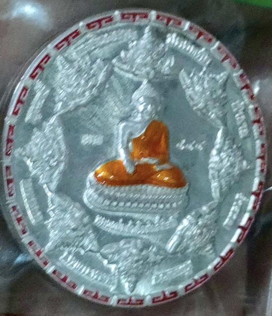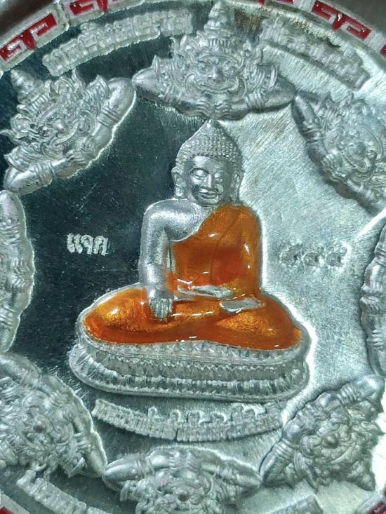 เหรียญแถมยกลัง หลวงพ่อสำเร็จศักดิ์สิทธิ์ จ.สระบุรี เนื้อเงินลงยาจีวร ลงยาขอบแดง ตอกโค๊ต แจก ตอกหมายเลข 544
