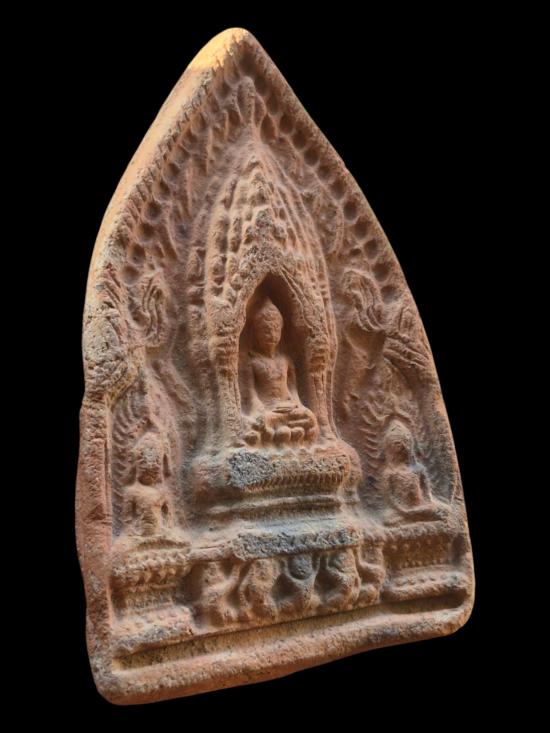 ตรีกายซุ้มปรางค์ เนื้อดินเผา พิมพ์ใหญ่ ไม่ทราบที่