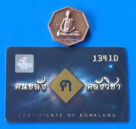 เหรียญสมนาคุณเนื้อสัมฤทธิ์ (เหรียญหล่อหลวงปู่ เดินหน อิเกสาโร รุ่นแรก เพชรยอดมงกุฎ (ระงับโศก รับโชคทุกทิศ) พร้อมบัตรรับรองหนังสือ หลวงปู่ เดินหน อิเกสาโร เล่ม 2 หมายเลข 13410 |