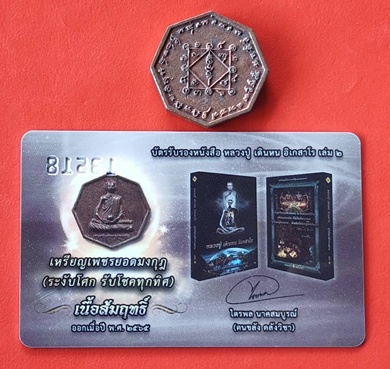เหรียญสมนาคุณเนื้อสัมฤทธิ์ (เหรียญหล่อหลวงปู่ เดินหน อิเกสาโร รุ่นแรก เพชรยอดมงกุฎ (ระงับโศก รับโชคทุกทิศ) พร้อมบัตรรับรองหนังสือ หลวงปู่ เดินหน อิเกสาโร เล่ม 2 หมายเลข 13518 |