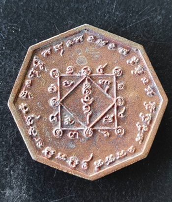 - ด้านหลังลงยันต์มหาราช ( ราชเสน่ห์ )