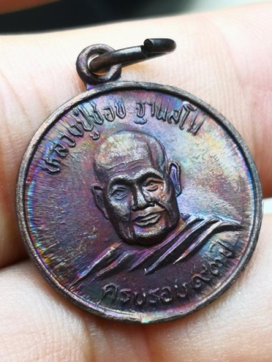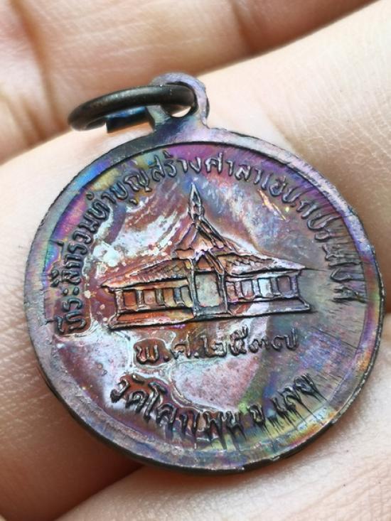 เหรียญกลมหลวงปู่ชอบ ครบรอบ 93 ปี ที่ระลึกร่วมทำบุญสร้าง ศาลาเอนกประสงค์ ปี 2537 วัดโคกมน จ.เลย
