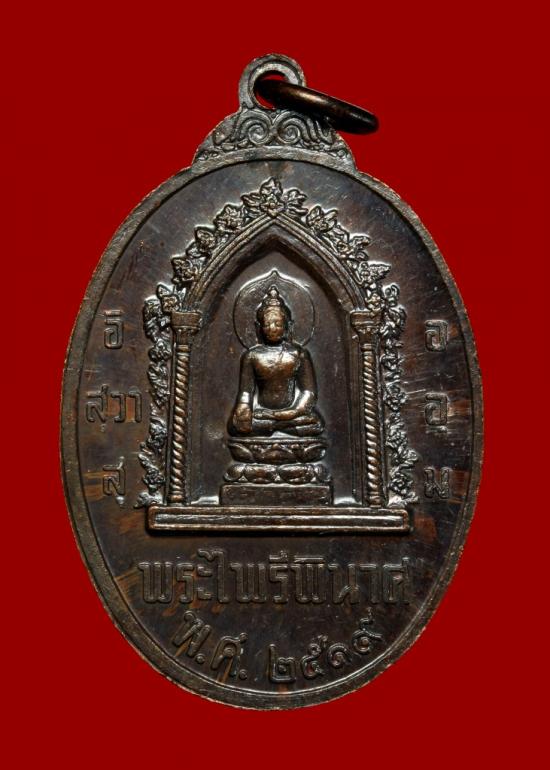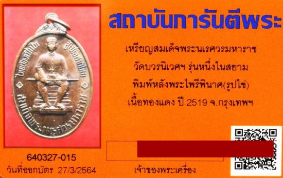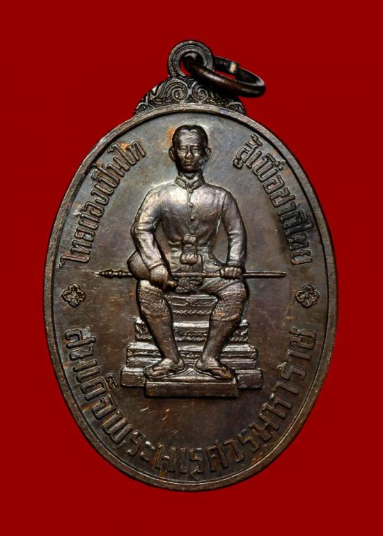 เหรียญสมเด็จพระนเรศวรมหาราช วัดบวรนิเวศฯ รุ่นหนึ่งในสยาม พิมพ์หลังพระไพรีพินาศ (รูปไข่) ป.ขีด เนื้อทองแดง ปี 2519 จ.กรุงเทพ มีบัตรรับรอ