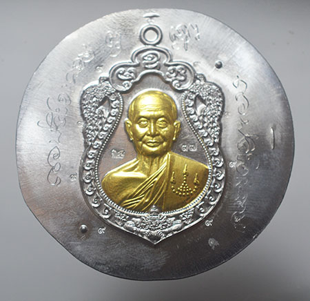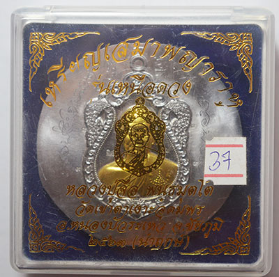 เหรียญเสมาพญาราหู รุ่น เหนือดวง 63 หลวงปู่จื่อ วัดเขาตาเงาะ จ.ชัยภูมิ ตะกั่วไม่ตัดปีก หน้าชุบทอง นำฤกษ์ รอยจารหน้า และหลัง ตอก ๙ รอบ พิเศษ เลข 37