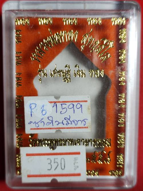 ชื่อพระเครื่อง พระขุนแผน หลวงพ่อทอง สุทธสีโล รุ่น เศรษฐี เงิน ทอง ออกวัดพระพุทธบาทเขายายหอม ปี 58 เนื้อ อัลปาก้าซาติน หมายเลข 1599 มีจาร เคาะเดียวแดง