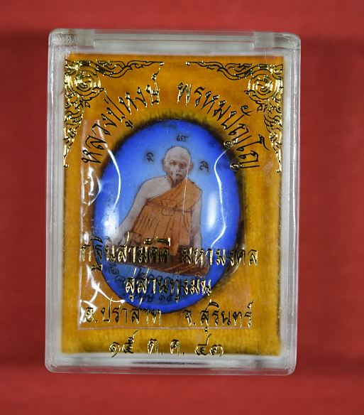 ล็อตเก็ตนั่งเต็มองค์ หลวงปู่หงษ์ พรหมปัญโญ รุ่น กฐินสามัคคี มหามงคล สุสานทุ่งมน จ.สุรินทร์ ร.ศ.2000 วันที่ 15 ต.ค. 2543 ด้านหลังบรรจุ เกษา ชานหมาก ผงพุทธคุณพร้อมกล่อง เคาะเดียวแดง