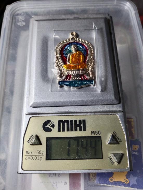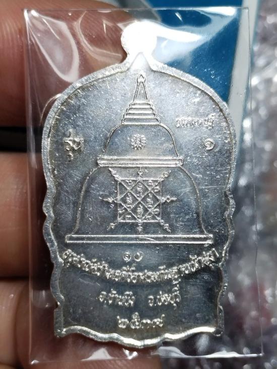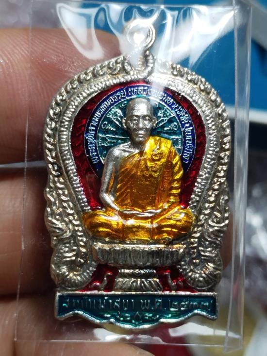 เหรียญนั่งพานมหาเศรษฐี หลวงพ่อสวัสดิ์ วัดเม้าสุขา รุ่น1 ปี2537 เนื้อเงินลงยาฟ้า เลข10