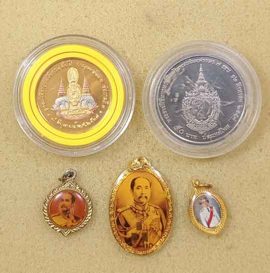 เหรียญร.5 5 เหรียญ + เหรียญร.9 +ล็อกเก็ต ร.9 3 องค์ + สมเด็จพระนางเจ้าสิริกิติ์