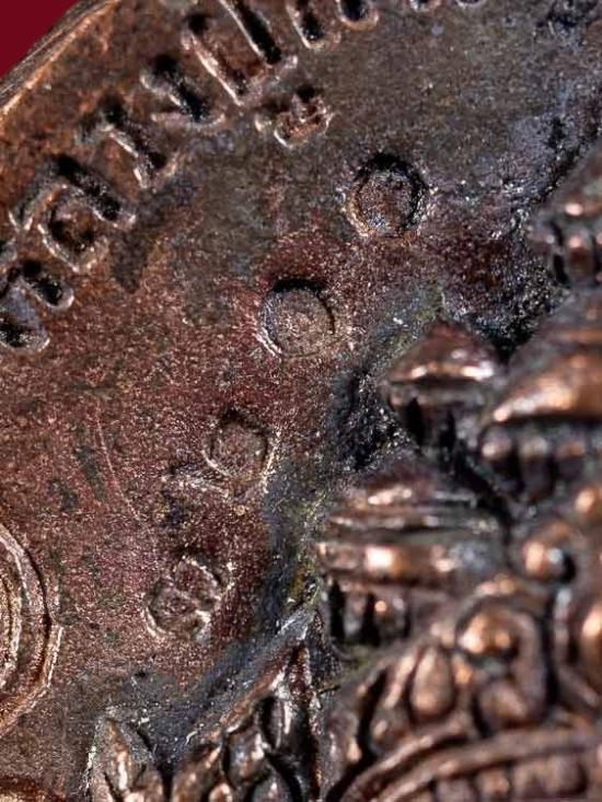 เหรียญหล่อโบราณท้าวมหาพรหมสุริยเทพ ของหลวงปู่กาหลง เขี้ยวแก้ว แห่งวัดเขาแหลม อ.วังสมบูรณ์ จ.สระแก้ว รุ่น ครอบเศียรพระลักษณ์ ปี 49มีโค๊ตและหมายเลข3210 รอยจารสวยๆ+ซองเดิมๆ