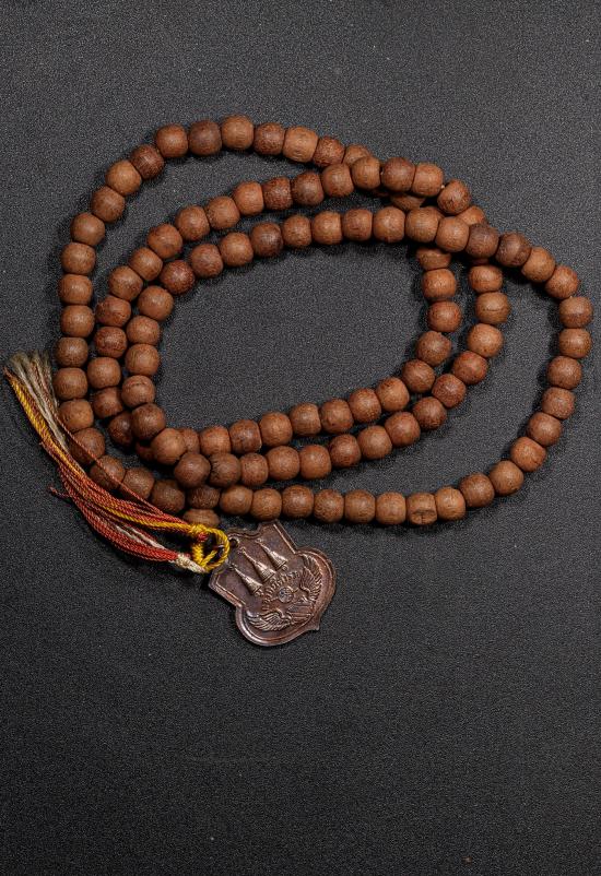 (เคาะแดง1900) +บัตรสมาคม สร้อยประคำหลวงพ่ออุตตมะ เนื้อไม้