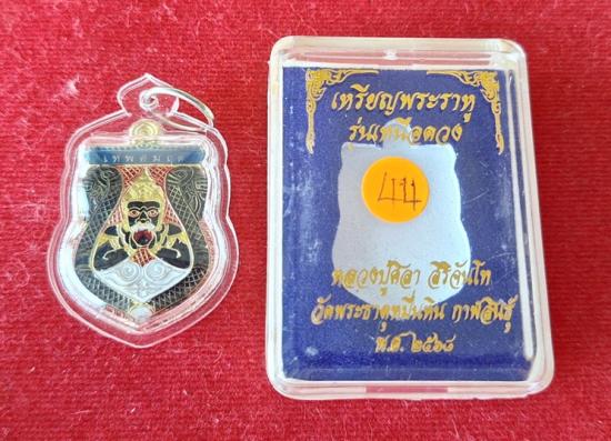 เหรียญพระราหูอมจันทร์ หลวงปู่ศิลา เมตตาอธิษฐานจิต รุ่นเหนือดวง เนื้อทองเหลืองลงยา เลี่ยมกรอบพร้อมใช้ เลขสวยNo.44