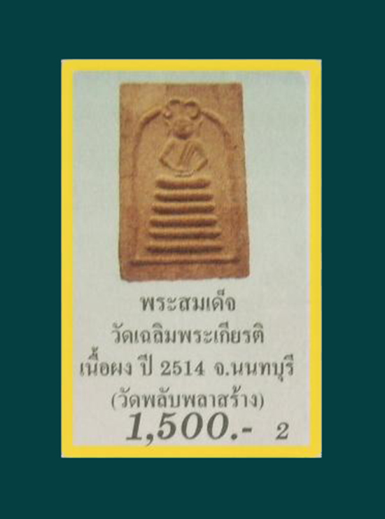 สมเด็จวัดพลับพลา จ.นนทบุรี ปี2514 พิธีใหญ่ครับมีเกจิอาจารย์ที่เก่งๆในยุคนั้นร่วมอธิฐานจิตรปลุกเสกหลายท่าน และที่พิเศษสุดของรุ่นนี้ผสมมวรสารเก่าพระสมเด็จบางขุนพรหมด้วยครับ โดยนำพระสมเด็จบางขุนพรหมที่ชำรุดมาผสมรวม และได้มวลสารสมเด็จบางขุนพรหม ที่ใช้สร้างพระสมเด็จบางขุนพรหม ปี 2517 มาอีก โดยท่านเจ้าอาวาสวัดใหม่อมตรส บางขุนพรหมได้มอบให้กับวัดพลับพลาเพื่อการสร้างพระรุ่นนี้ครับ