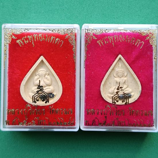 ***เคาะเดียว 2 องค์ ชุดพระพุทธเมตตา พระปิดตาพิมพ์หยดน้ำฝังตะกรุดเงิน+พระพุทธเมตาพิมพ์หยดน้ำฝังตะกรุดเงิน หลวงปู่วิเวียร วัดดวงแข กทม. ปี35 สภาพสวยเดิม มาพร้อมกล่องใสๆครับ |