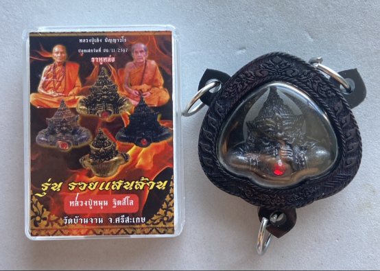 วัดใจเคาะเดียวแดงจ้า รูปหล่อพระราหู หลวงปู่หมุน เลี่ยมกรอบไม้สั่งทำ สวยๆเคาะเดียวแดงจ้า