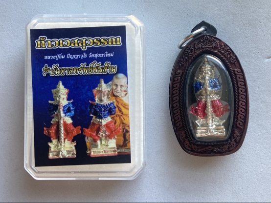 วัดใจเคาะเดียวแดงจ้า รูปหล่อท้าวเวสสุวรรณ หลวงปู่อิ่ม วัดทุ่งนาใหม่ เลี่ยมกรอบไม้ งานสั่งทำ เคาะเดียวแดงจ้า