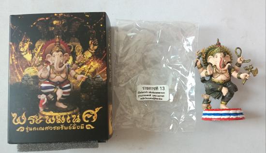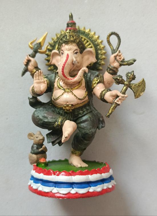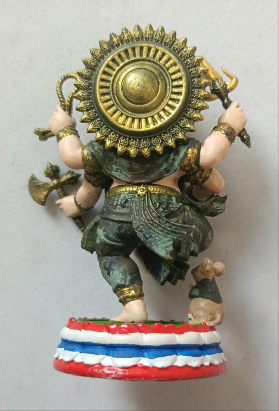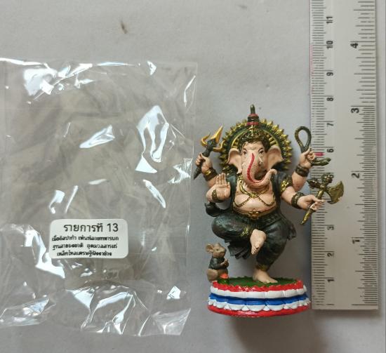 วัดใจเคาะเดียวแดงจ้า พระบูชาพุทธศิลป์พระพิฆเนศ ขนาด3นิ้ว เนื้ออัลปาก้าเพ้นท์ลายทหารบก ฐานธงชาติ อุดมวลสารแร่เหล็กไหลเศรษฐีฝังงาช้าง เคาะเดียวแดงจ้า