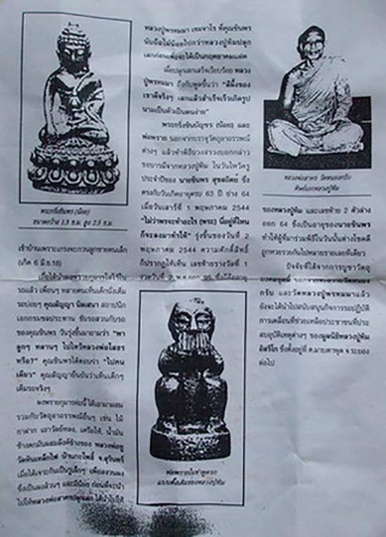 มวลสารที่ใช้ในการสร้าง - ชนวนพระกริ่งชินบัญชร หลวงปู่ทิม - ชนวนพระกริ่งรุ่นแรก หลวงพ่อสาคร - ชนวนพระกริ่งที่รวบรวมไว้อีกมากมาย - ผงที่อุดก้น ใช้ผงพรายกุมารหลวงปู่ทิม กับ ผงพรายกุมารหลวงพ่อสาคร ผสมกับน้ำมันเสือหลวงปูพรหมา อุบลราชธานี จำนวนการสร้าง ๒,๕๐๐ ตน คาถาบูชา โอมมหาภูโต สิมัง พระอระหังสุคโต ภะคะวา นะอ้อแอ โมอ้อแอ้ ที่สำคัญคุณชินพรได้นำสีผึ้งและผงพรายกุมารโหลสุดท้ายของหลวงปู่ทิมอุดไว้ในพรายกุมารดูดรุ่นนี้ทุกองค์ โดยนิมนต์พระเกจิอาจารย์สายระยองหลายท่านร่วมพิธีมหาพุทธาภิเศก เช่น หลวงพ่อสาคร มนุญโญ วัดหนองกรับ ซึ่งท่านเป็นลูกศิษย์ของหลวงปู่ทิม และยังได้นิมนต์ หลวงปู่พรหมมา เขมมจาโร สำนักวิปัสนาหินผานางคอย จ.อุบลราชธานี มาร่วมพุทธาภิเศกในพิธีนี้ด้วย หลังจากปลุกเสกเสร็จ หลวงปู่พรหมมาบอกว่า ของเขาแรงเสกไม่นานก็ขึ้นรูปแล้ว หลังจากนั้นหลวงพ่อสาคร วัดหนองกรับ ได้นำไปปลุกเสกให้อีก ๕ เสาร์ ๕ อังคาร หลังจากเสกเสร็จท่านบอกว่า ขุนแผนก็ขุนแผนเถอะ แสดงว่าพรายกุมารดูดรกรุ่นนี้พุทธคุณจะต้องดีและแรงทางด้านเมตตามหานิยมไม่แพ้ขุนแผนแน่นอน พรายกุมารดูดรกรุ่นนี้ผู้นำไปใช้บูชามีประสบการณ์มากมาย ทั้งด้านเสี่ยงโชคและด้านเมตตา ถือเป็นของดีที่น่าบูชาสะสมอีกรุ่นหนึ่งครับ |