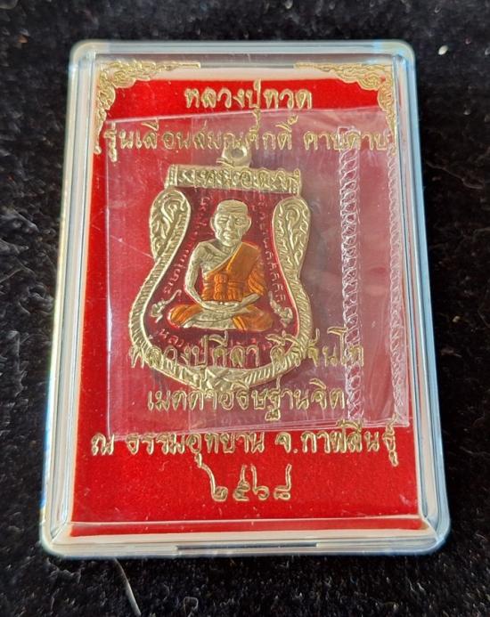 วัดใจ หลวงปู่ทวด หลวงปู่ศิลา เมตตาอธิษฐานจิต รุ่นเลื่อนสมณศักดิ์ เหนือดวง เนื้อทองทิพย์ ลงยา No.114 |