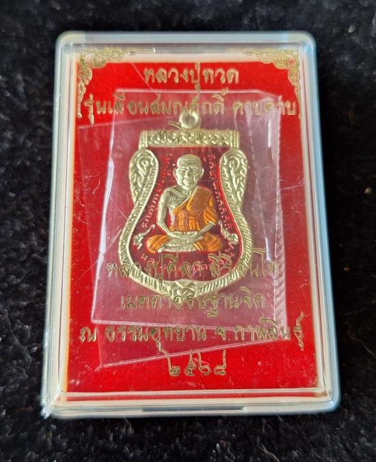 วัดใจ หลวงปู่ทวด หลวงปู่ศิลา เมตตาอธิษฐานจิต รุ่นเลื่อนสมณศักดิ์ เหนือดวง เนื้อทองทิพย์ ลงยา No.110 |