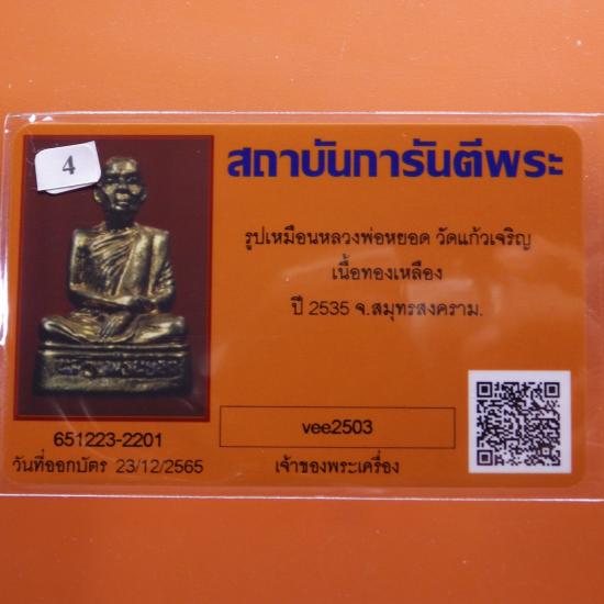 พระรูปเหมือนหลวงพ่อหยอด เนื้อทองเหลือง วัดแก้วเจริญ ปี2535...4.....67.12.14