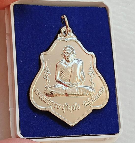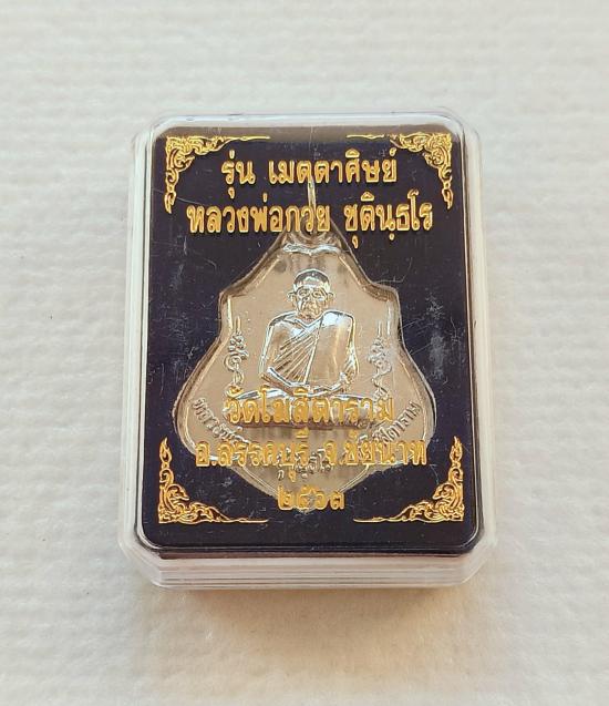 เหรียญหลวงพ่อกวยหลังยันต์เนื้ออัลปาก้า รุ่นเมตตาศิษย์ ปี 2563 พร้อมกล่องออกที่วัดโฆสิตารามโดยตรง เหรียญหลังยันต์ปี 2563 มีประสบการณ์ (รับประกันพระตามกฎครับ)