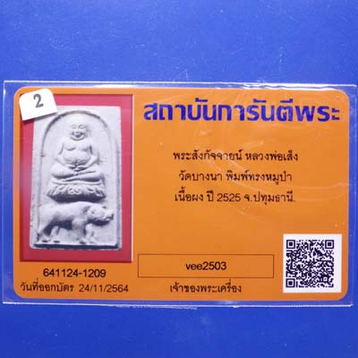 พระสังกัจจายน์ หลวงพ่อเส็ง วัดบางนา พิมพ์ทรงหมูป่า จ.ปทุมธานี ปี 2525 ....N2..(66.10.3