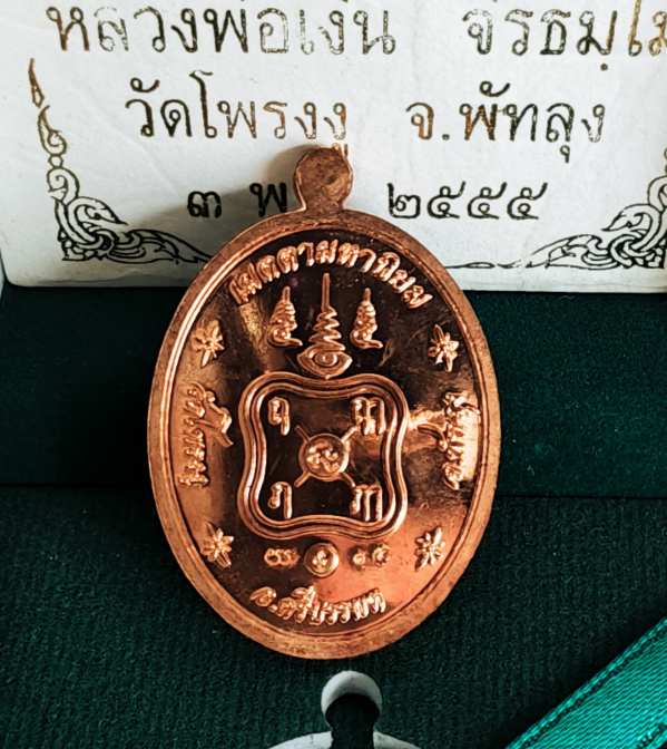 เคาะเดียวแดง เหรียญ เจริญพร 55 ทองแดงผิวไฟหน้ากากเงิน หลวงพ่อเงิน วัดโพรงงู พัทลุง