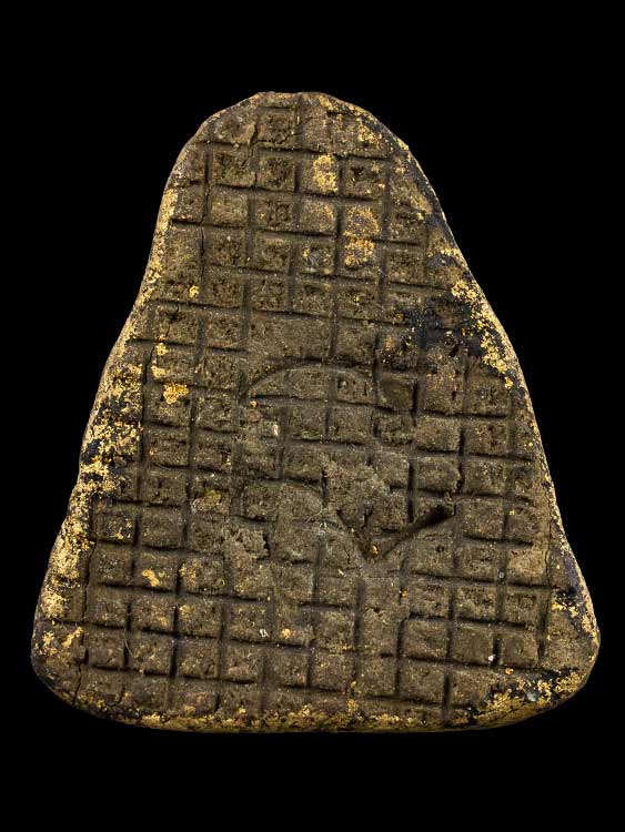 พระปิดตามหามงคล หลวงปู่โทน วัดเขาน้อยคีรีวัน บ้านบึง ชลบุรี วาระครบ 7 รอบ ปี 2549 ลงรกแดงปิดทอง หลังตะแกรงยันต์นะ โค๊ดชัดพร้อมกล่องำมะยี่เดิมๆ