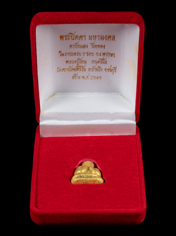 พระปิดตามหามงคล หลวงปู่โทน วัดเขาน้อยคีรีวัน ชลบุรี วาระครบ 7 รอบ ปี 2549 ลงรกแดงปิดทอง โค๊ดชัดพร้อมกล่องเดิมๆ