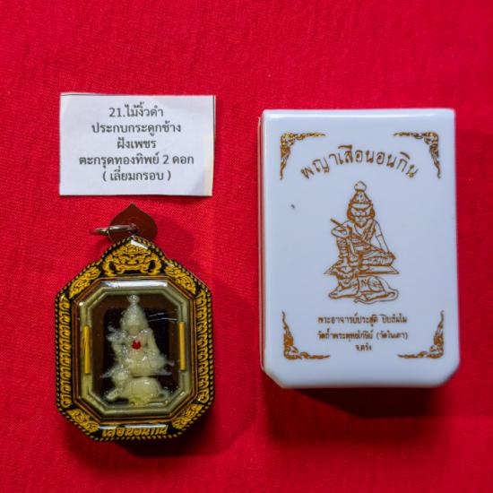 พญาเสือนอนกิน พระอาจารย์ประสูติ วัดในเตา ไม้งิ้วดำ ประกบกระดูกช้าง ฝังเพชร ตะกรุดทองทิพย์ 2 ดอก (เลี่ยมกรอบใส่น้ำมันเสือเดิมๆจากวัด) เลขโค้ด 5