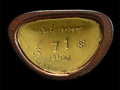 พระกริ่งมงคลจักรวาล "พุทธาคมเขาอ้อ" เนื้อนวะโลหะแก่ทองคำก้นทอง จ.พัทลุง ปี ๒๕๔๕.."หมายเลข 71"..สภาพสวยเดิม เก็บเก่า ไม่ได้ใช้ พร้อมกล่องเดิม..ในปี ๒๕๔๔ พระครูอดุลธรรมกิตติ์ หรือ ที่ปัจจุบันรู้จักกันดีในนามพ่อท่านกลั่น เจ้าอาวาสสำนักวัดเขาอ้อ ได้ร่วมกับ พล.ต.ต.ขุนพันธรักษ์ราชเดช ศิษย์ฆราวาสยุคเก่าวัย ๑๐๔ ปี (ในขณะนั้น) เจ้าของฉายา มือปราบหนังเหนียวฆราวาสจอมขมังเวท จัดสร้างมหามงคลวัตถุ รุ่น ขุนพันธ์พุทธาคมเขาอ้อ โดยมีวัตถุประสงค์เพื่อเป็นการเผยแพร่เชิดชูชื่อเสียงเกียรติคุณของสำนักวัดเขาอ้อซึ่งเคยโด่งดังเลืองลือมานานนับพันปี และเพื่อหาปัจจัยมาบูรณะปฏิสังขรณ์เสนาสนะภายในวันเขาอ้ออย่างต่อเนื่อง มหามงคลวัตถุ รุ่น ขุนพันธ์พุทธาคมเขาอ้อ ได้สร้างความนิยมศรัทธาต่อมหาชนอย่างท้วมท้นจนก่อเกิดคุณประโยชน์มากมายนานัปการต่อสำนักวัดเขาอ้อทั้งในทางตรงและทางอ้อม ..ในปี๒๕๔๕ นี้ก็นับเป็นอีกวาระหนึ่งที่พ่อท่านกลั่น และ พล.ต.ต.ขุนพันธรักษ์ราชเดชได้ร่วมกันจัดสร้างมหามงคลวัตถุ รุ่น มงคลจักรวาลพุทธาคมเขาอ้อ ขึ้นโดยมีวัตถุประสงค์ในการจัดสร้างเช่นดังครั้งก่อน และเพื่อเป็นการเฉลิมฉลองเนื่องในวาระที่พ่อท่านกลั่นมีสิริอายุครบ ๘๘ ปี มหามงคลวัตถุรุ่น มงคลจักรวาลพุทธาคมเขาอ้อ ที่จัดสร้างในครั้งนี้ยังยึดถือความพิถีพิถันเพรียบพร้อมสมบูรณ์ในทุกๆ ด้านเช่นเดิม ไม่ว่าจะเป็นในด้านรูปลักษณ์พิมพ์ทรงซึ่งทุกแบบพิมพ์มีความประณีตสวยงามประทับตาประทับใจ ในด้านเนื้อหาชนวนมวลสารศักดิ์สิทธิ์ที่มีกฤตยาคมพูนเพิ่มทวีคูณเพราะนำชนวนมวลสารที่เหลืออยู่มากมายจากรุ่น ขุนพันธ์พุทธาคมเขาอ้อ มาจัดสร้าง และในด้านพิธีกรรมประจุพุทธาคมอันเข้มขลังศักดิ์สิทธิ์จะอุบัติขึ้นรวมสามวาระมหามงคลด้วยกันคือพีธีกรรมครั้งที่ ๑ ได้ประกอบพิธีเททองแบบโบราณตามตำรับสำนักวัดเขาอ้อ สำเร็จเรียบร้อยไปแล้ว เมื่อวันอาทิยต์ที่ ๒๓ ธันวาคม ปี๒๕๔๔ ณ สำนักวัดเขาอ้อ โดยมีพ่อท่านกลั่น พล.ต.ต.ขุนพันธรักษ์ราชเดช, อาจารย์ ฉันท์ทิพย์ พันธรักษ์ราชเดช, อาจารย์ ประจวบ คงเหลือ และพระเกจิอาจารย์ชื่อดังสายเขาอ้ออีก ๘ รูป ร่วมกันประกอบพิธี ซึ่งในวันพิธีมหามงคลครั้งนี้ ได้เกิดปรากฎการณ์มหัสจรรย์เหนือธรรมชาติบังเกิดขึ้นเป็นที่ประจักษ์แก่สายตาของผู้ที่มาร่วมในพิธีเททองทุกท่าน กล่าวคือก่อนพิธีเททองฝนก็ตกลงมาอย่างหนักราวกับฟ้ารั่วตั้งแต่ช่วงเช้า จวบจนถึงฤกษ์พิธีเททองฝนก็ได้หยุดตกอย่างฉับพลัน จากพิธีเททองแล้วเสร็จก็ถึงพิธีเปิดฤกษ์กดพิมพ์พระผงกลมมงค