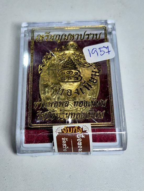 เหรียญมหาปราบ ไหว้ครู 68 พ่อพล บ้านทองเนียม เนื้อทองเหลืองขัดเงา จัดสร้าง 2000 องค์ ๆ นี้หมายเลข 1957 พระสวย ๆ เดิม ๆ ครับ