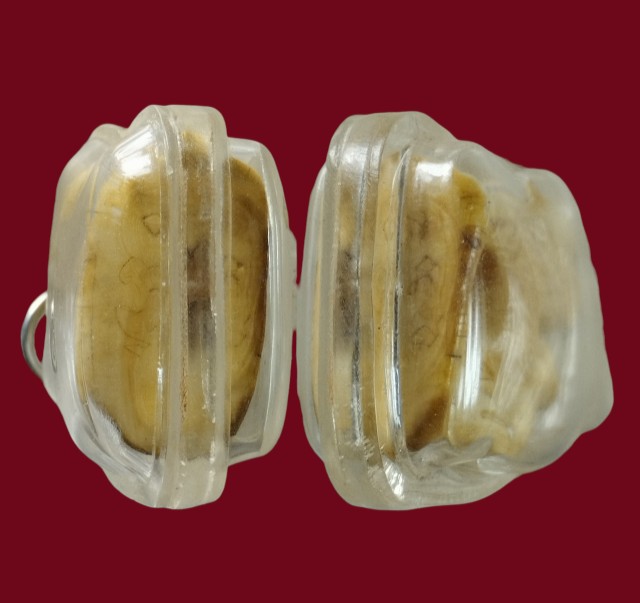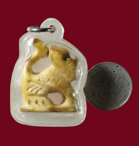 สิงห์แกะศิลป์โบราณ ตาฝังพลอย เก่าเข้าเลี่ยมกันน้ำไว้แล้ว ใต้ฐานมีจาร(ไม่ทราบเป็นงาหรือเขาหรือกระดูก)