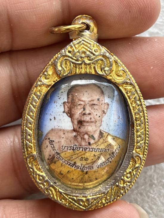 ล็อกเก็ตอาจารย์นอง วัดทรายขาว สงขลา หลังฝั่งตะกรุด จีวร เส้นเกษา มีกรอบสวยเดิม |