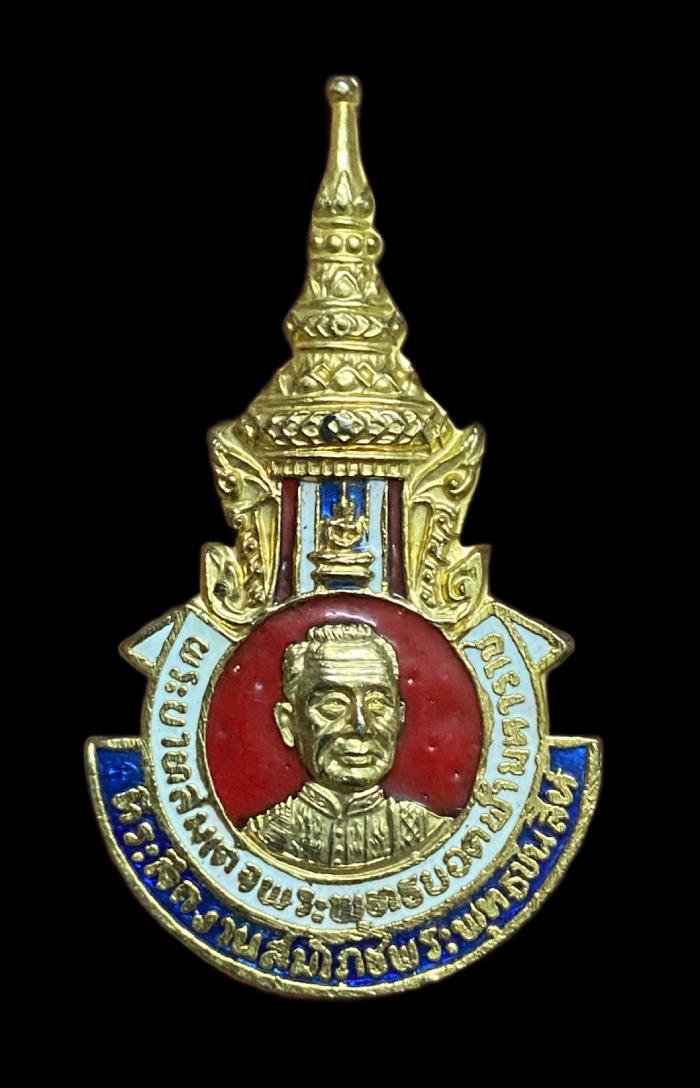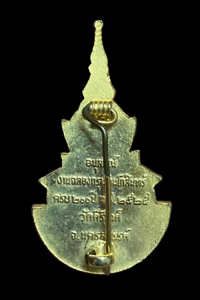 เข็มกลัด พระบาทสมเด็จพระพุทธยอดฟ้าจุฬาโลกมหาราช ที่ระลึกในงานครบ 200 ปี กรุงรัตนโกสินทร์ วัดคีรีวงศ์ จ.นครสวรรค์ เนื้อกะไหล่ทองลงยา ปี 2525