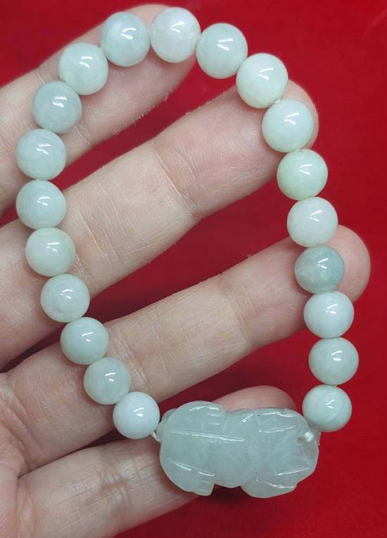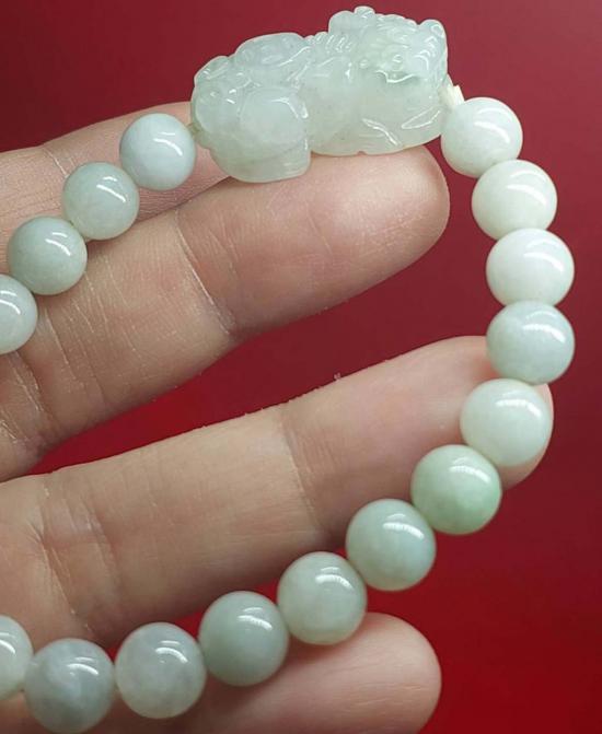 ***วัดใจ***สร้อยข้อมือปี่เซี๊ยะ หินหยกขาว 8 มิล |